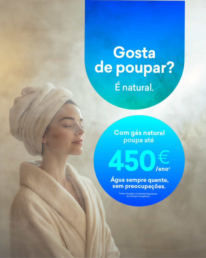 Com o Gás Natural, a água quente não pesa na carteira. Porque o seu bem-estar também deve ser eficiente.