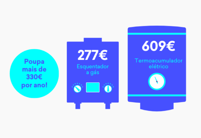 Mesmo tendo em conta a diferença de eficiência entre equipamentos (um esquentador a gás pode ter 85–88% de eficiência e um termoacumulador elétrico cerca de 90%), a poupança não compensa a diferença de preços. As famílias acabarão por pagar muito mais.